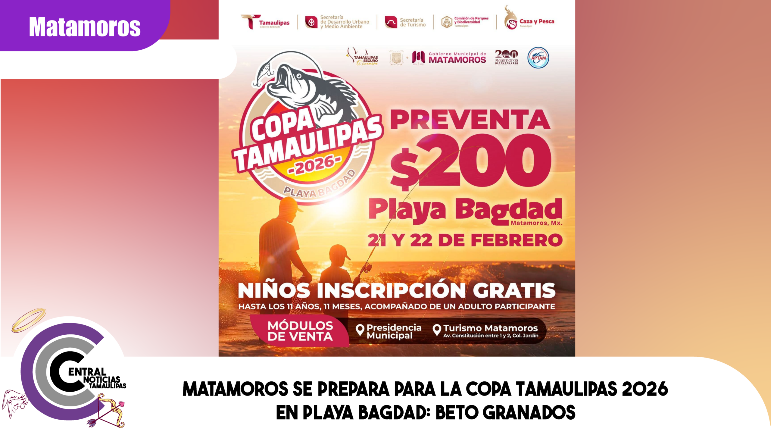 H. Matamoros, Tamaulipas.- La emoción de la pesca deportiva se vivirá en grande los días 21 y 22 de febrero en la Playa Bagdad, con la realización de la Copa Tamaulipas 2026, un evento que promueve la convivencia familiar, el turismo y el aprovechamiento responsable de nuestros espacios naturales.