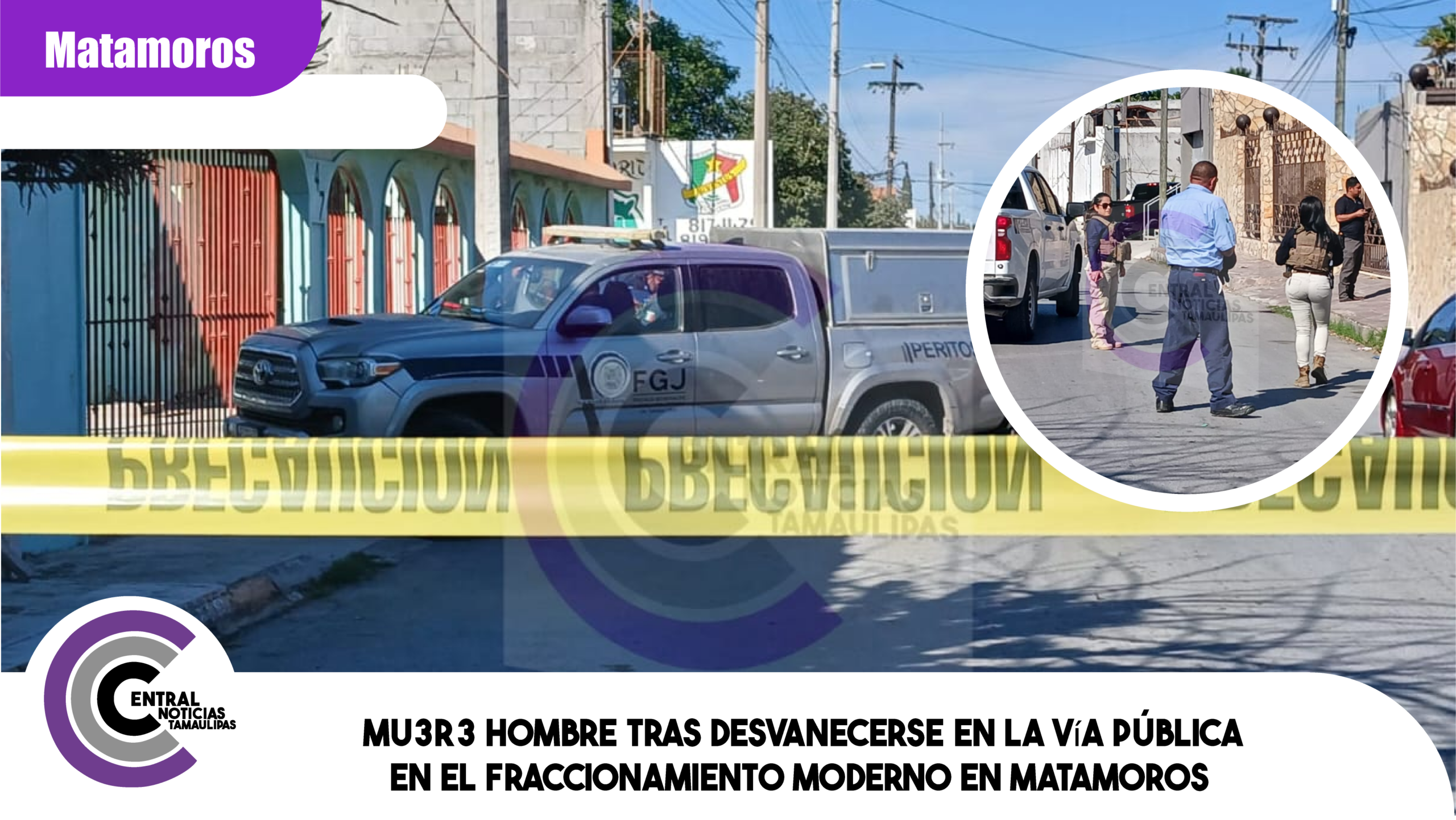 Matamoros, Tamaulipas.– Un hombre de 51 años de edad perdió la vida la tarde de este lunes en la vía pública, luego de desvanecerse tras presuntamente presentar complicaciones de salud en calles del fraccionamiento Moderno.