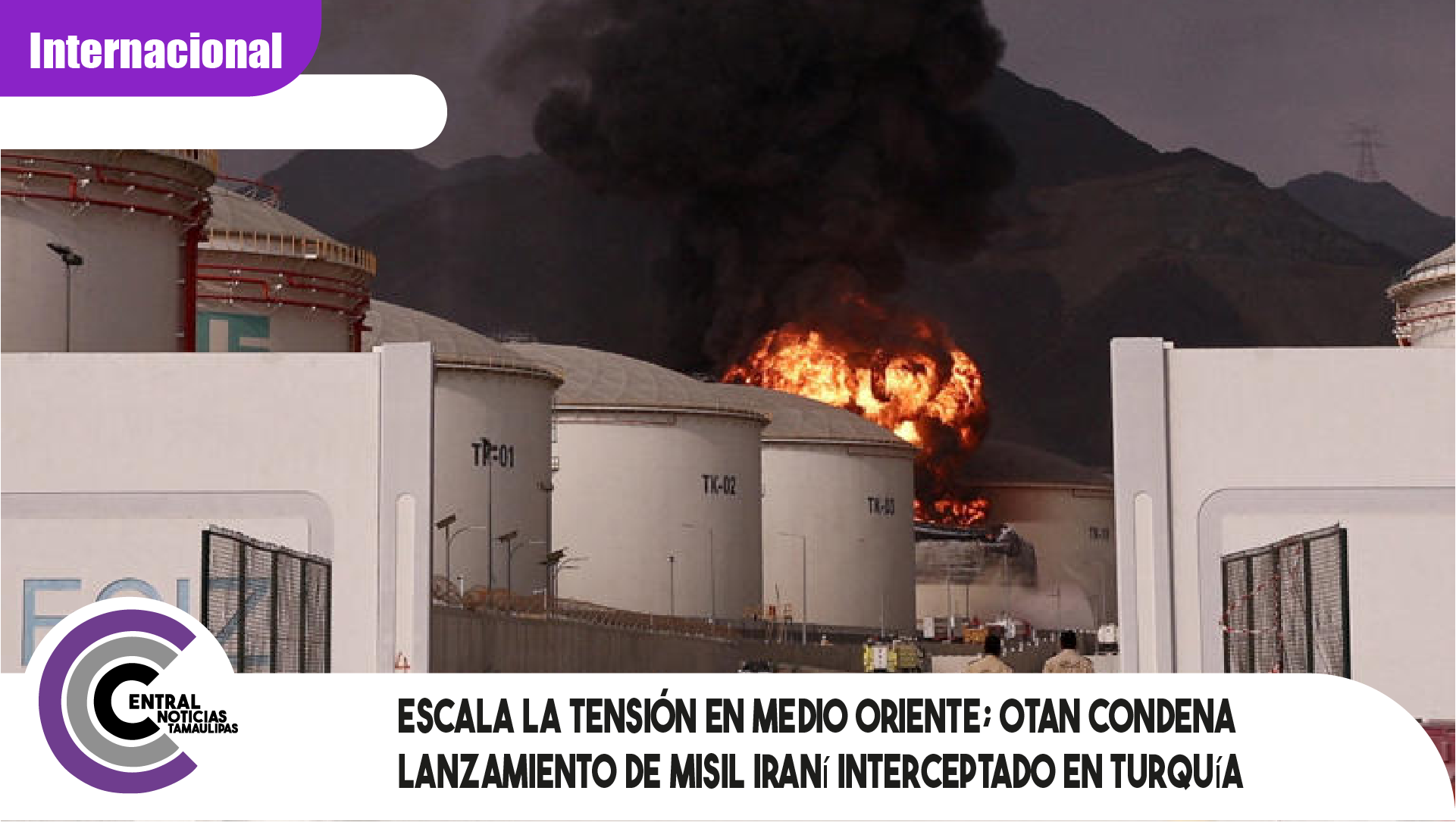 Escala la tensión en Medio Oriente; OTAN condena lanzamiento de misil iraní interceptado en Turquía