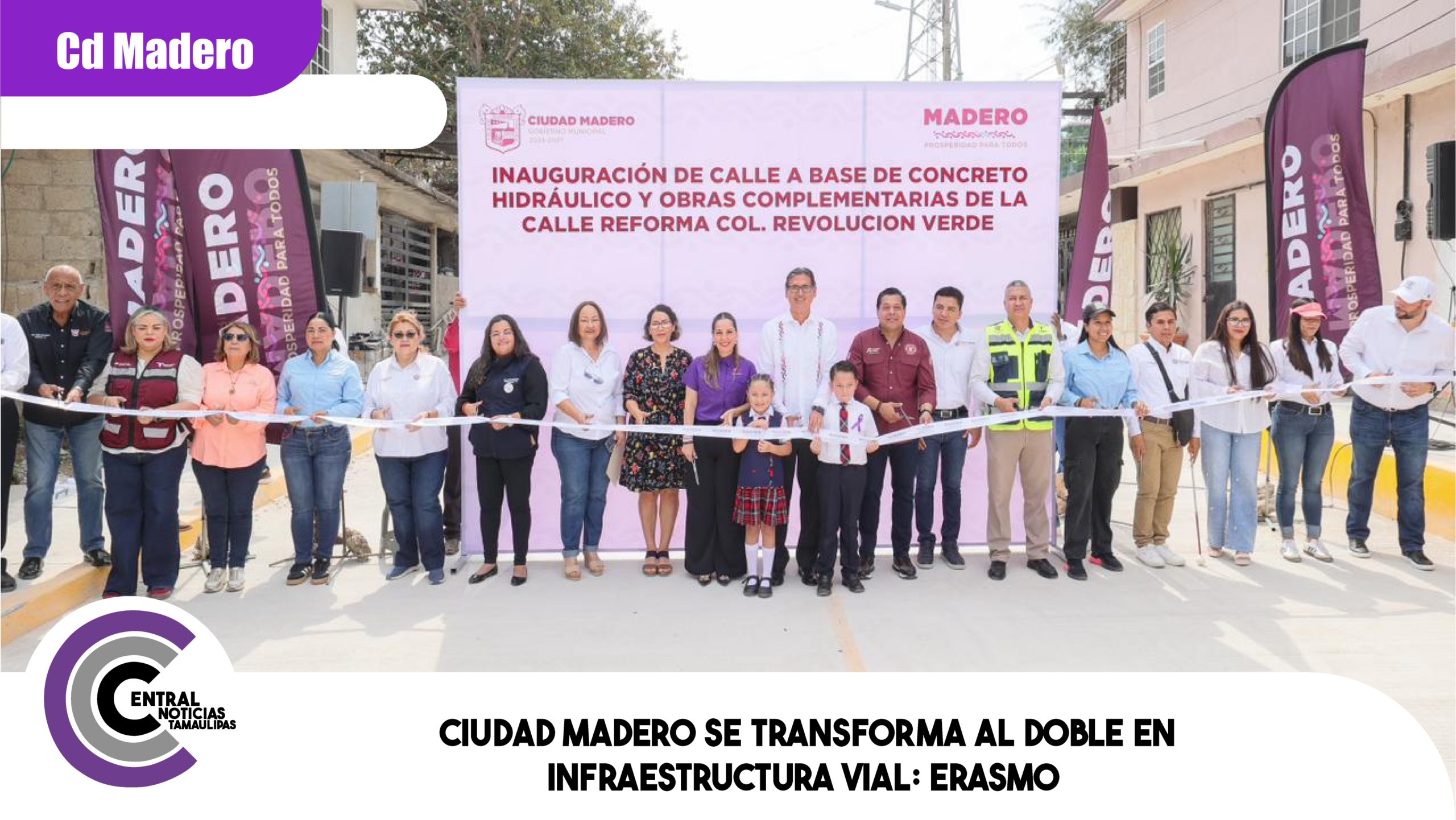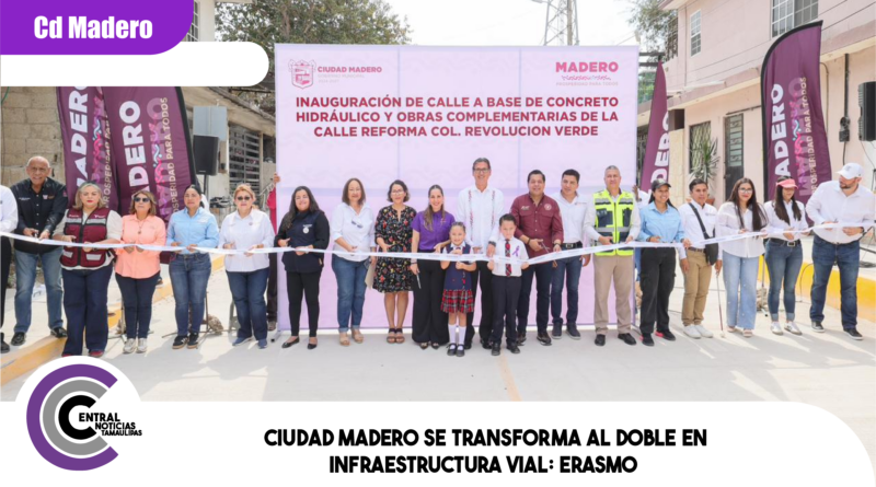 Ciudad Madero trabaja junto al gobernador Dr. Américo Villarreal Anaya para seguir avanzando al doble en la transformación en infraestructura vial, destacó el presidente municipal, Erasmo González Robledo, al encabezar la inauguración de la pavimentación de la calle Reforma en la colonia Revolución Verde, una obra con una inversión de casi 6 millones de pesos con una longitud de mas de 300 metros lineales, que fortalece la movilidad urbana y responde a una petición histórica de las familias de este sector.