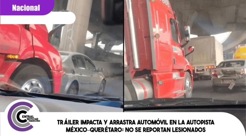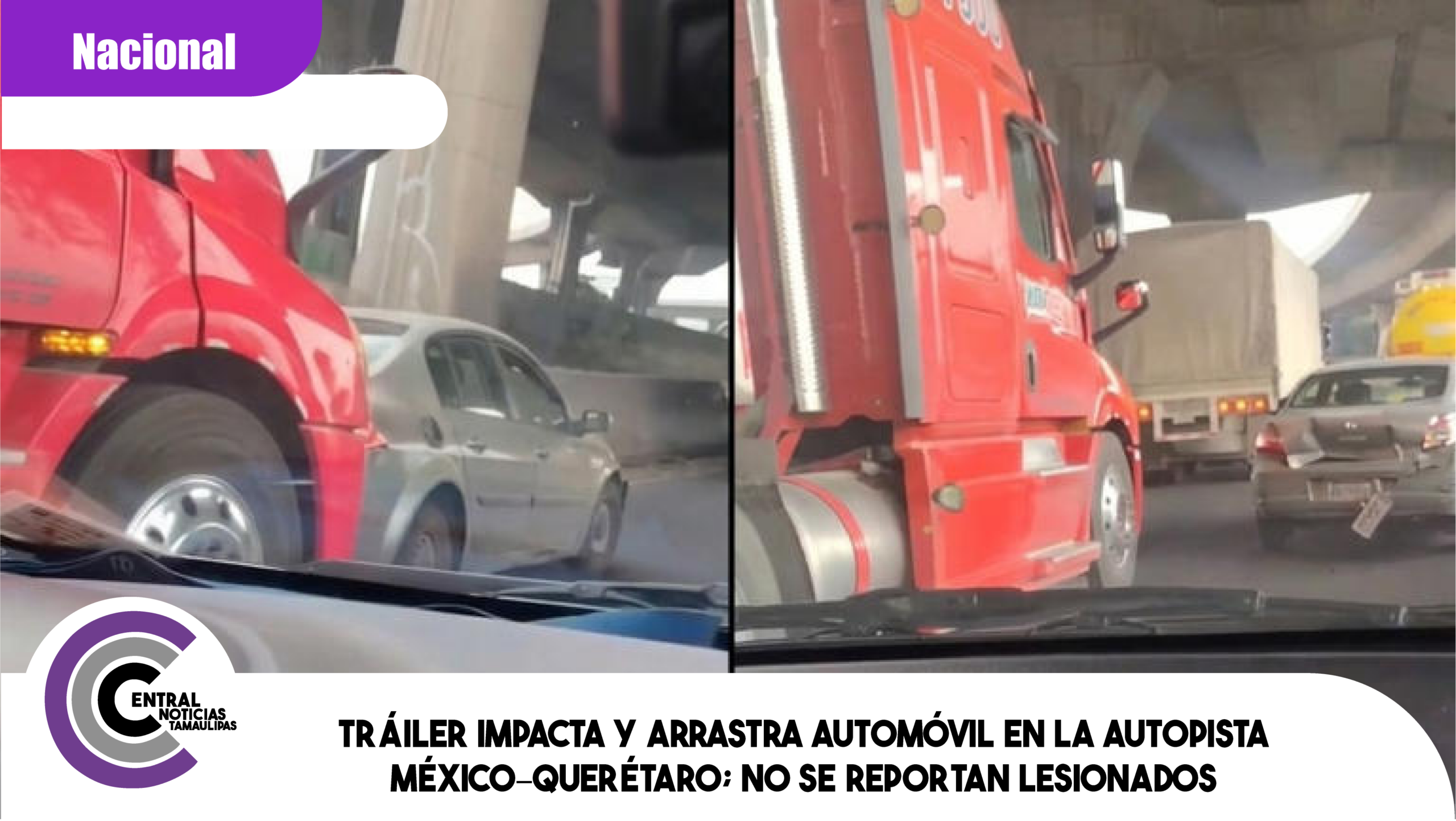 Tráiler impacta y arrastra automóvil en la autopista México–Querétaro; no se reportan lesionados