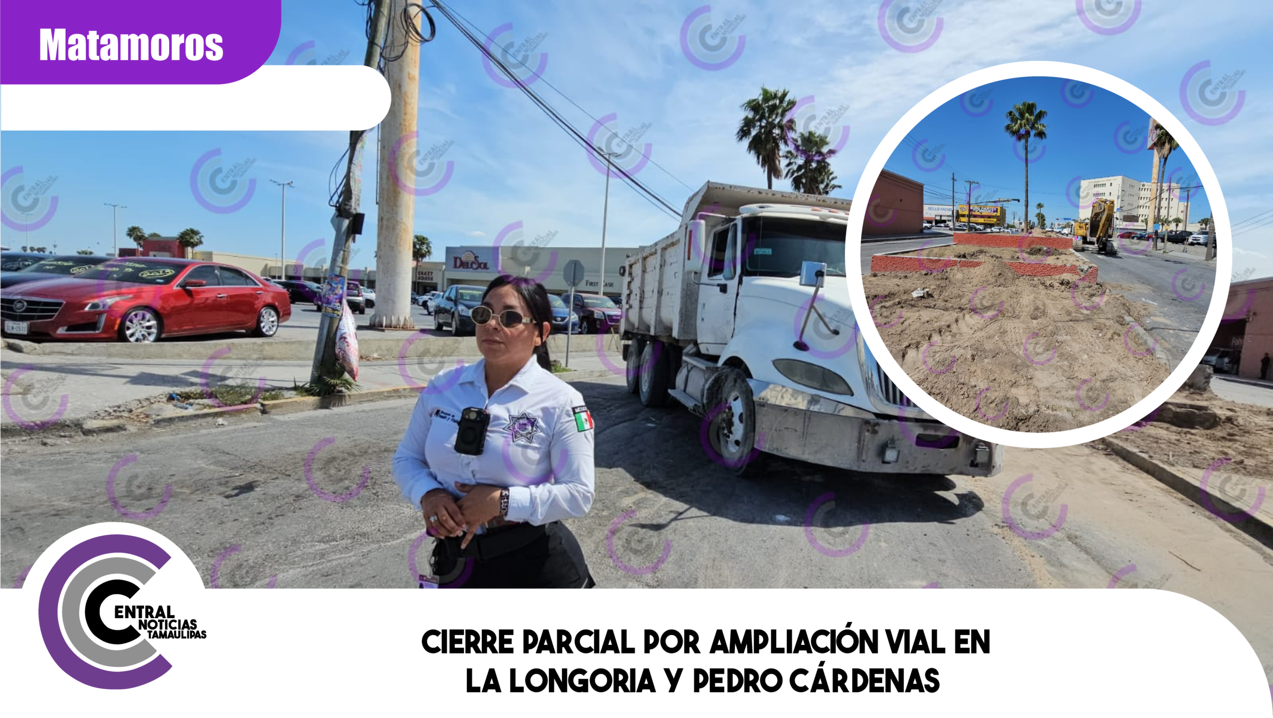 Matamoros, Tamaulipas •-Este martes 17 de marzo se implementó el cierre temporal de la vialidad en la calle Longoria, en su conexión hacia la avenida Pedro Cárdenas, debido a trabajos de ampliación vial en la zona.