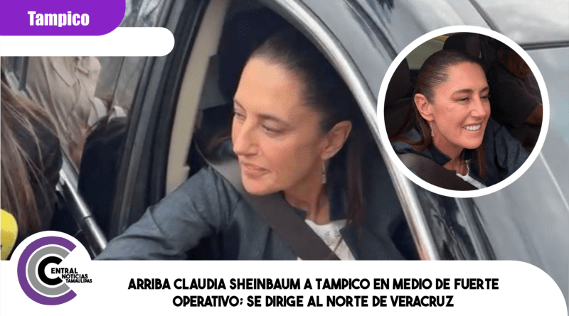 Arriba Claudia Sheinbaum a Tampico en medio de fuerte operativo; se dirige al norte de Veracruz