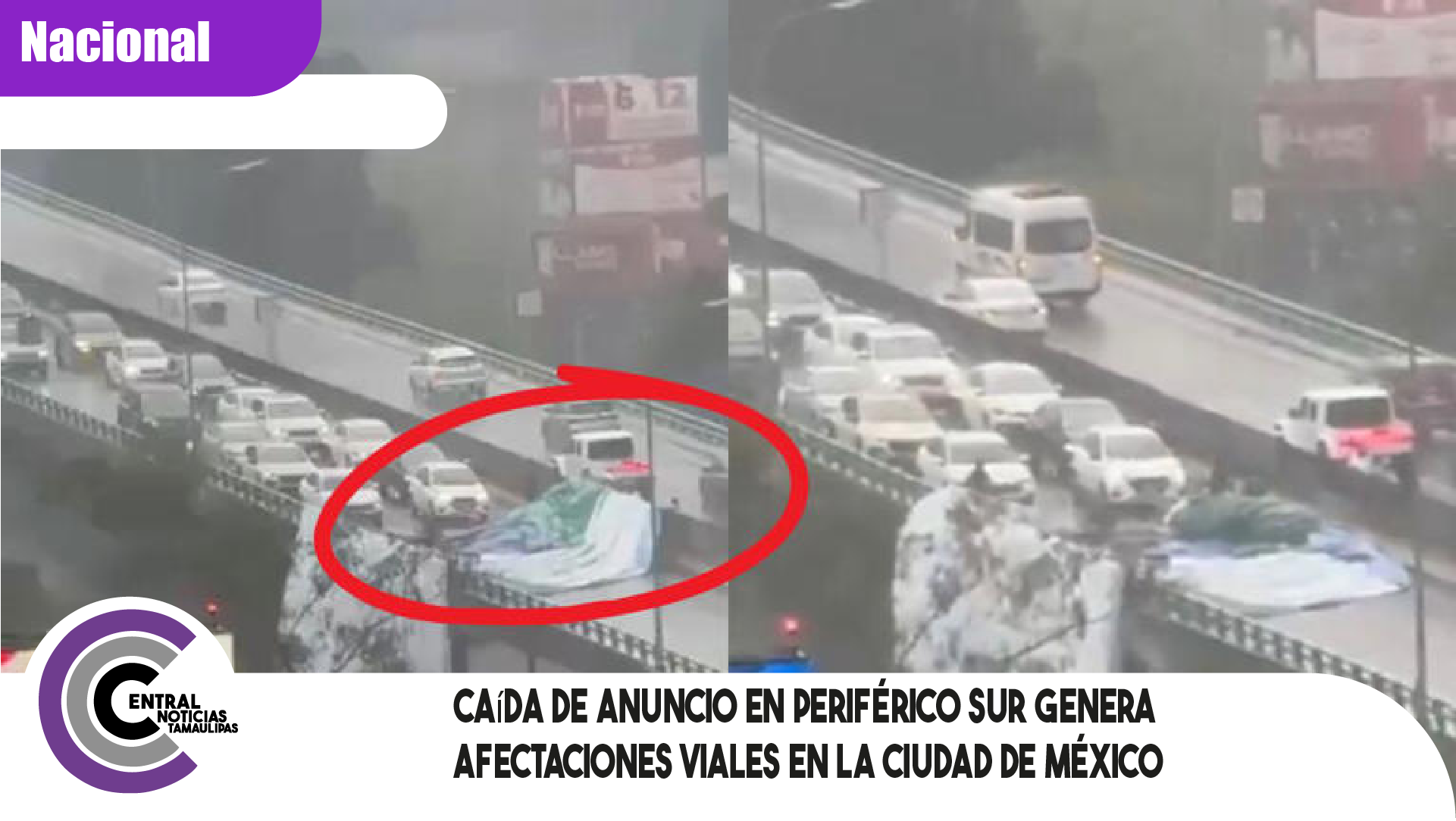 Caída de anuncio en Periférico Sur genera afectaciones viales en la Ciudad de México
