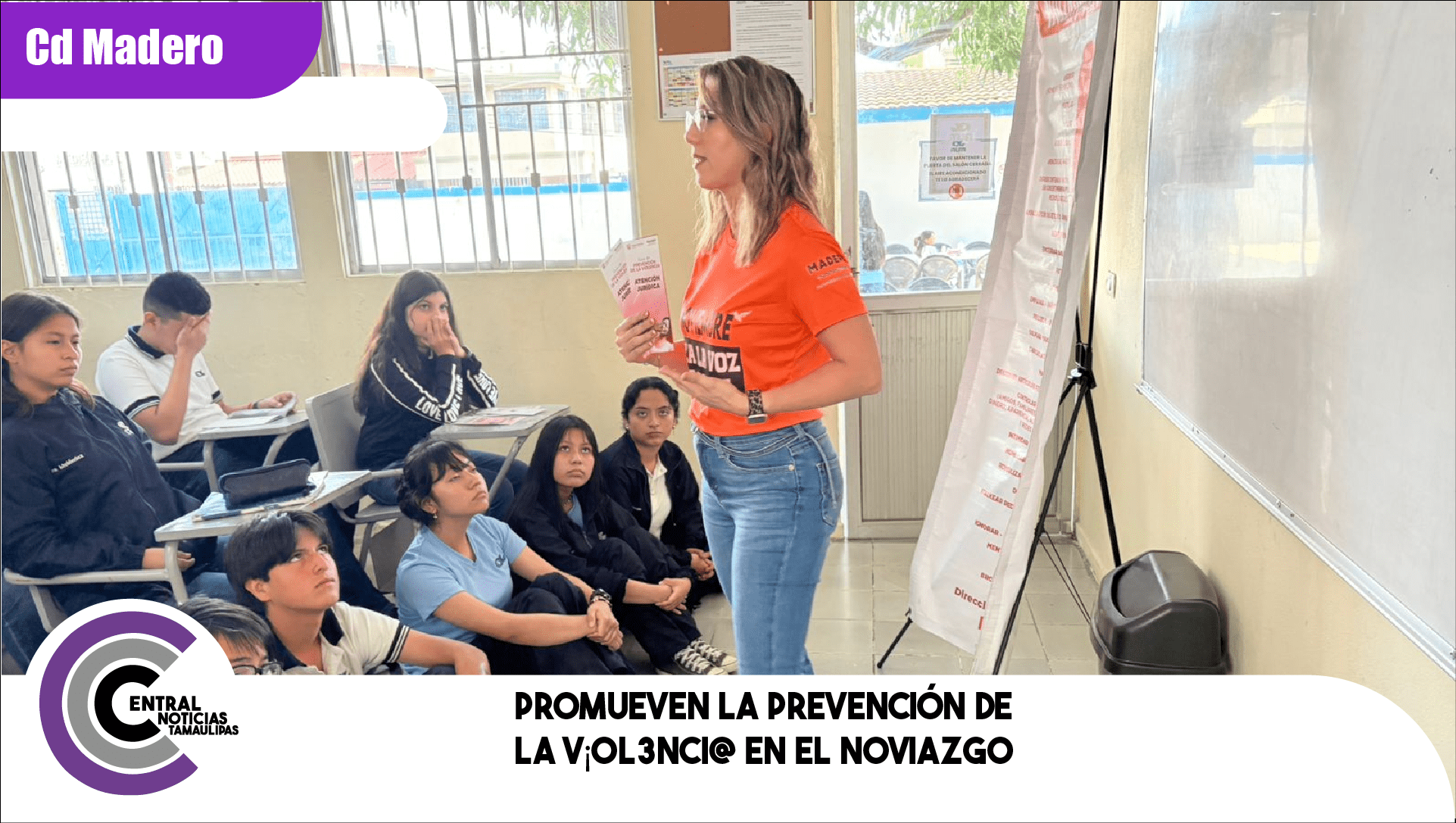 Ciudad Madero, Tamaulipas.- En el marco del Día Naranja, el Instituto Municipal de la Mujer de Ciudad Madero llevó a cabo una plática sobre la violencia en el noviazgo en las instalaciones de la preparatoria Alfa, misma que estuvo dirigida a 35 estudiantes.