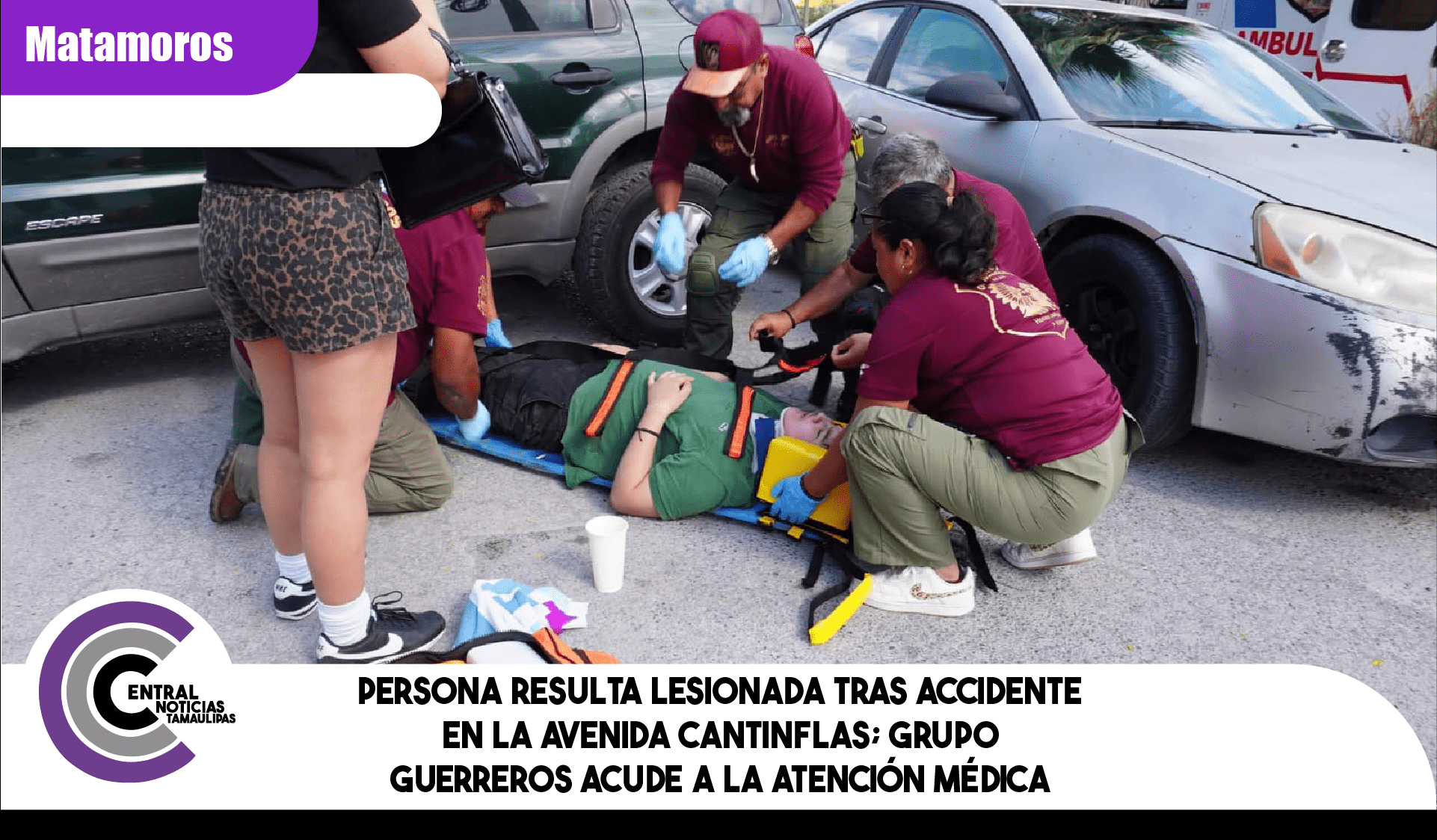Persona resulta lesionada tras accidente en la avenida Cantinflas; Grupo Guerreros acude a la atención médica