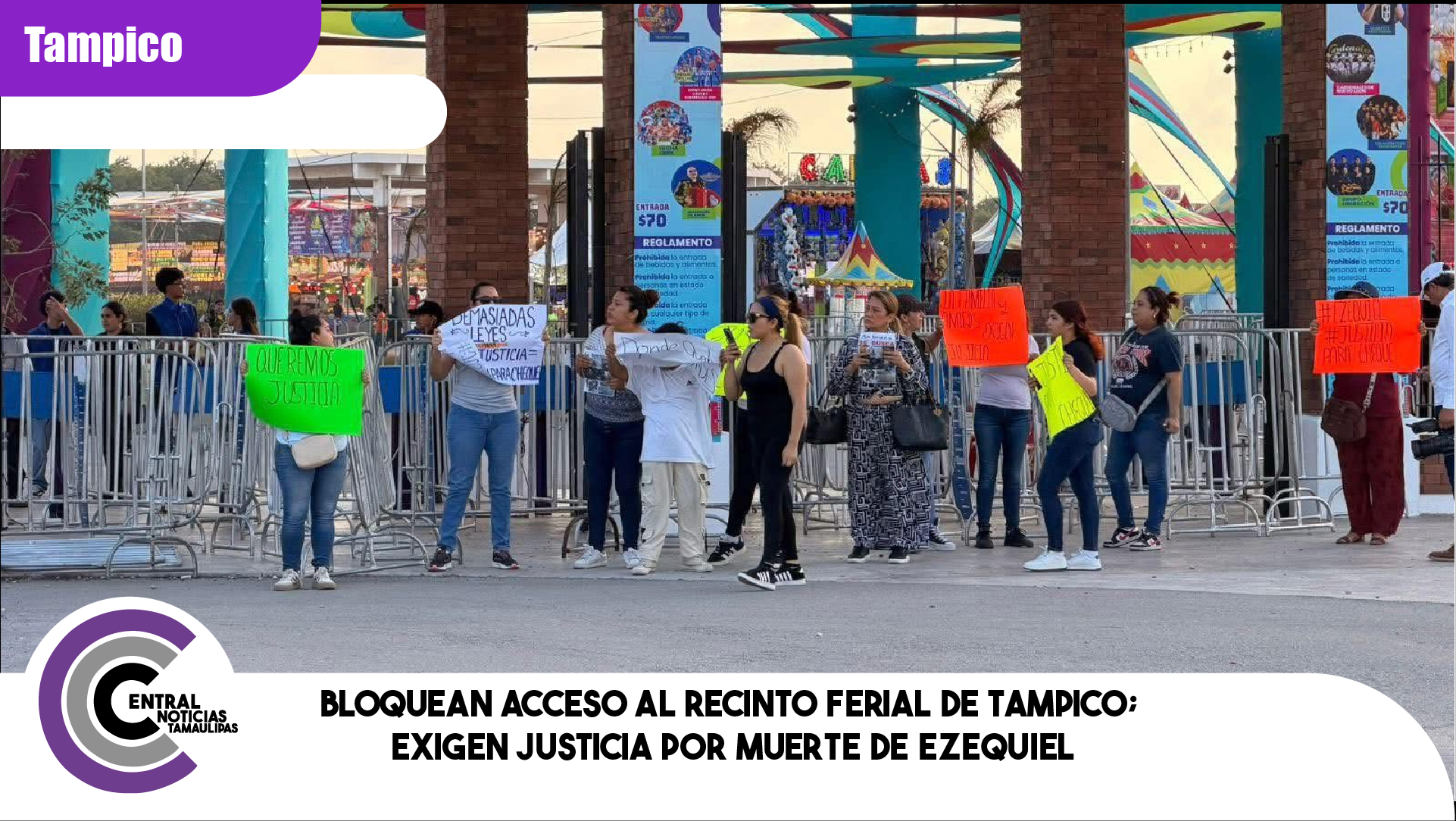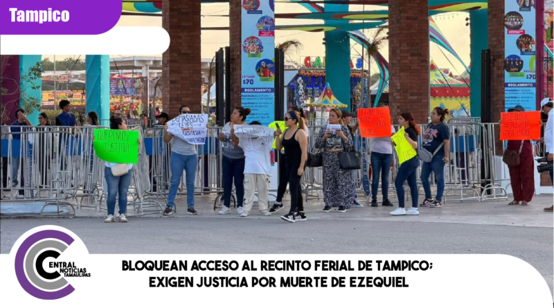 Bloquean acceso al recinto ferial de Tampico; exigen justicia por muerte de Ezequiel.