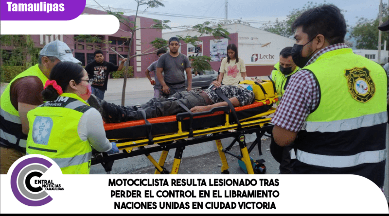 Ciudad Victoria, Tamaulipas.- Un joven de aproximadamente 25 años de edad resultó lesionado luego de sufrir un accidente mientras circulaba de norte a sur sobre el Libramiento Naciones Unidas.