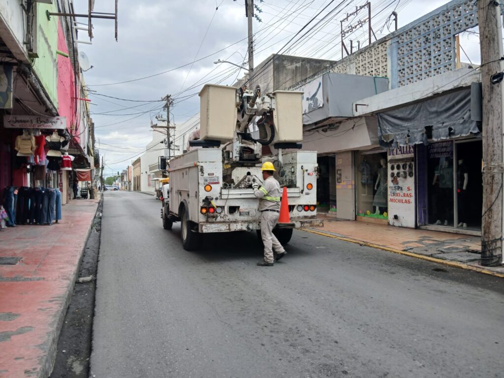 De acuerdo con la información, las labores corresponden al cambio de líneas eléctricas que resultaron dañadas, lo que provocó la suspensión del servicio de energía en diversos comercios del sector.