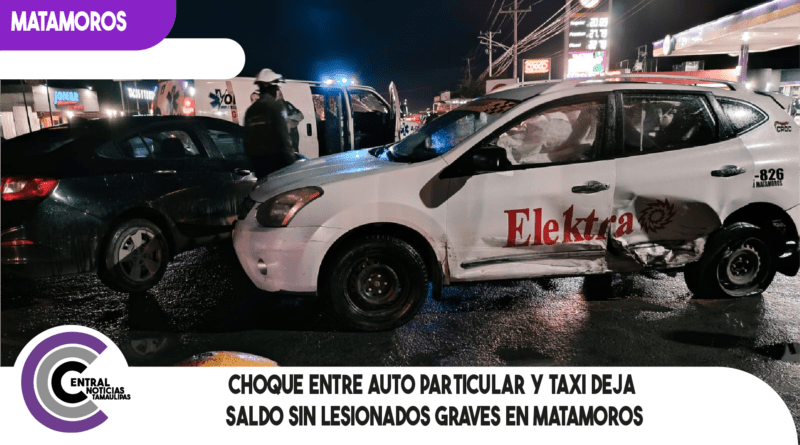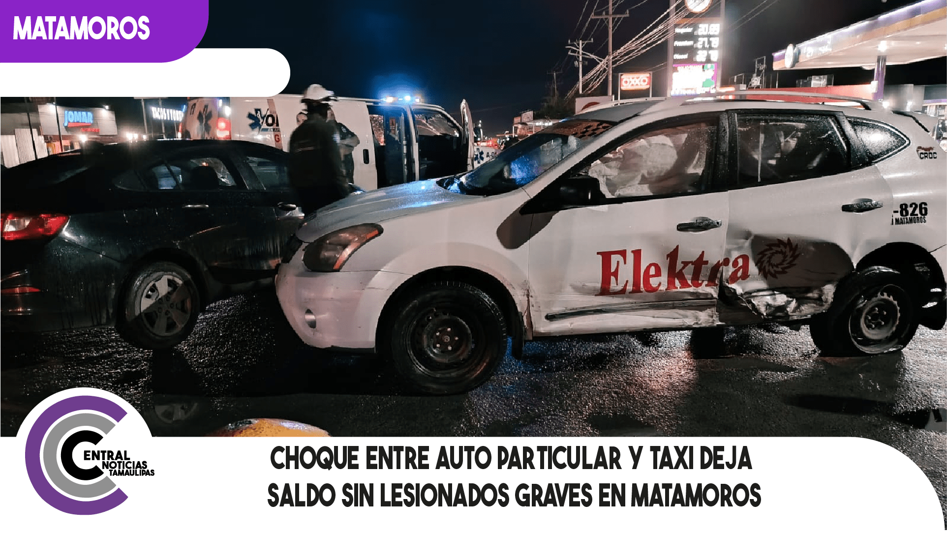 Choque entre auto particular y taxi deja saldo sin lesionados graves en Matamoros