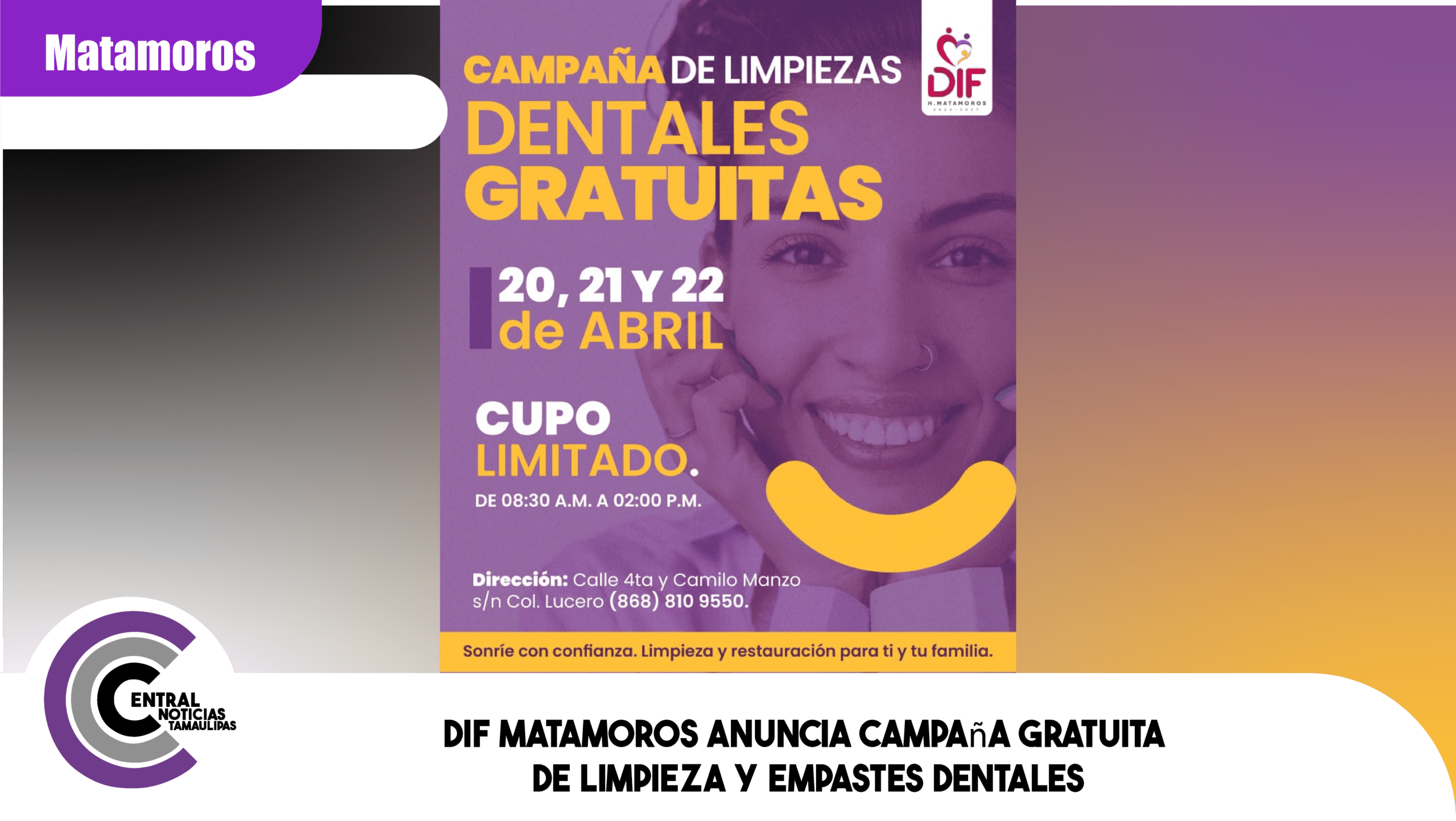 Con el objetivo de promover la salud bucal entre la población, el Sistema DIF Matamoros, encabezado por la presidenta Lic. Ana Ariceaga de Granados, llevará a cabo una campaña gratuita de limpiezas.