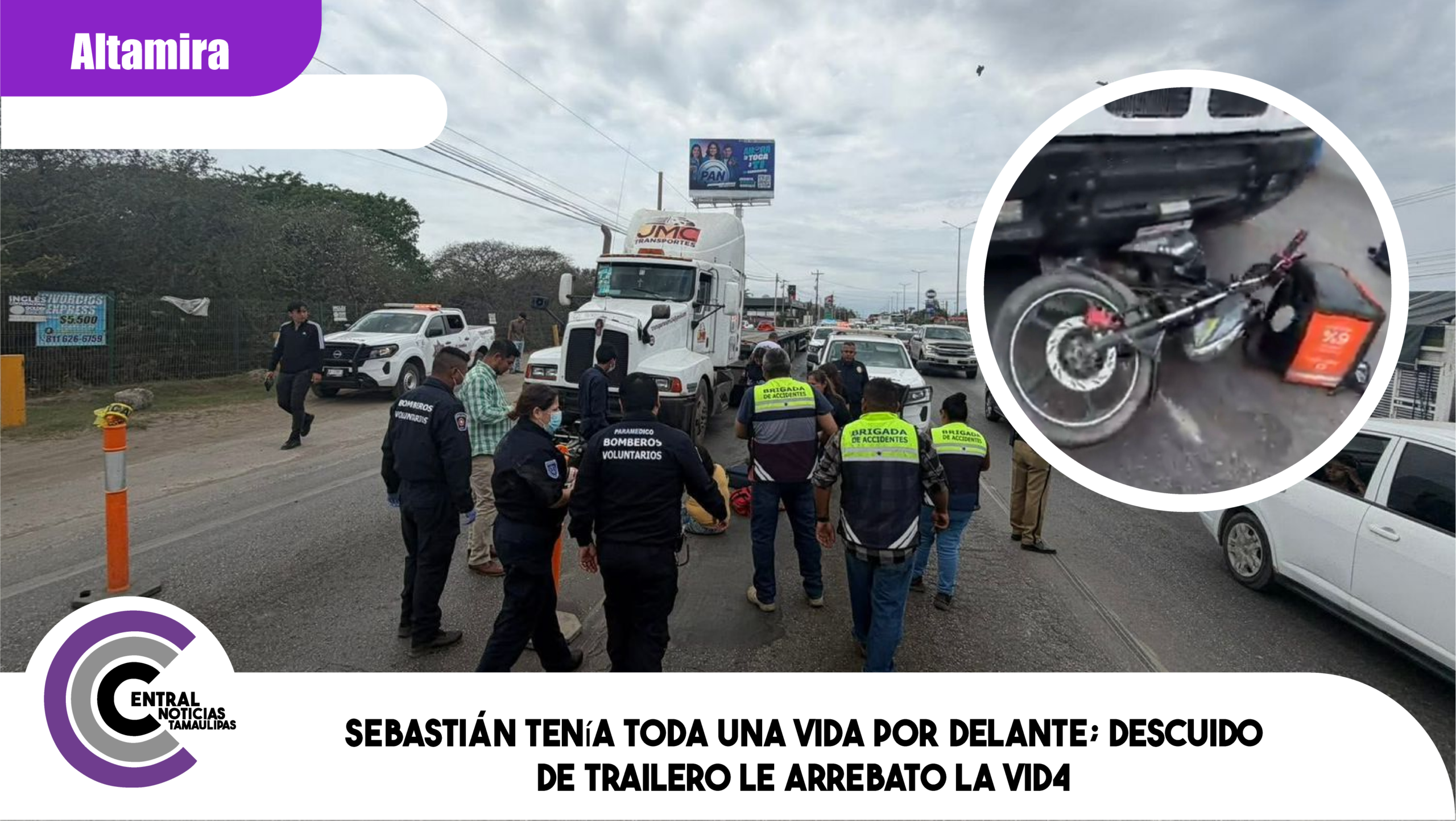 Según el peritaje preliminar de las autoridades viales de Altamira, el accidente se registró cuando la motocicleta en la que viajaba el joven, una unidad Italika color negro, permanecía detenida en un semáforo. Al momento de reiniciar la marcha, el motociclista habría tardado en avanzar, quedando en un punto ciego para el conductor de un tractocamión color blanco, propiedad de la empresa “Transportes JMC”.