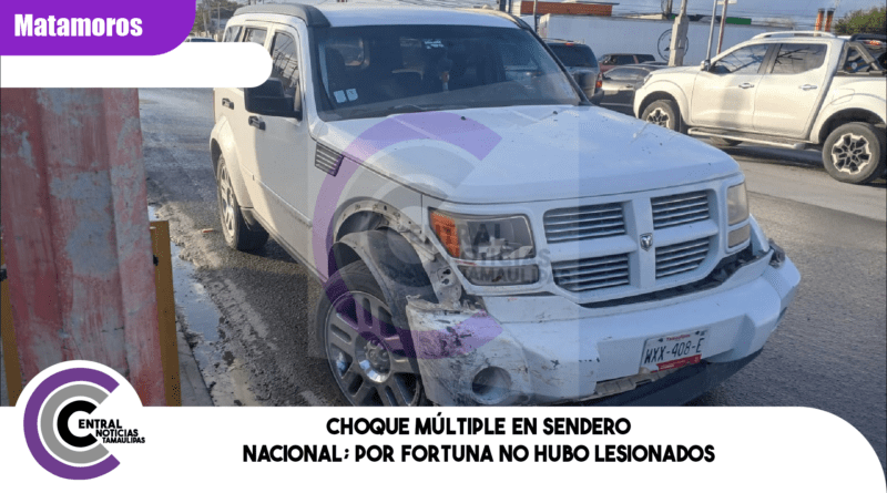 Matamoros, Tamaulipas.- Un accidente vial que involucró a tres vehículos se registró en el cruce de Sendero Nacional y Constituyentes, luego de que uno de los conductores presuntamente ignorara la luz roja del semáforo.