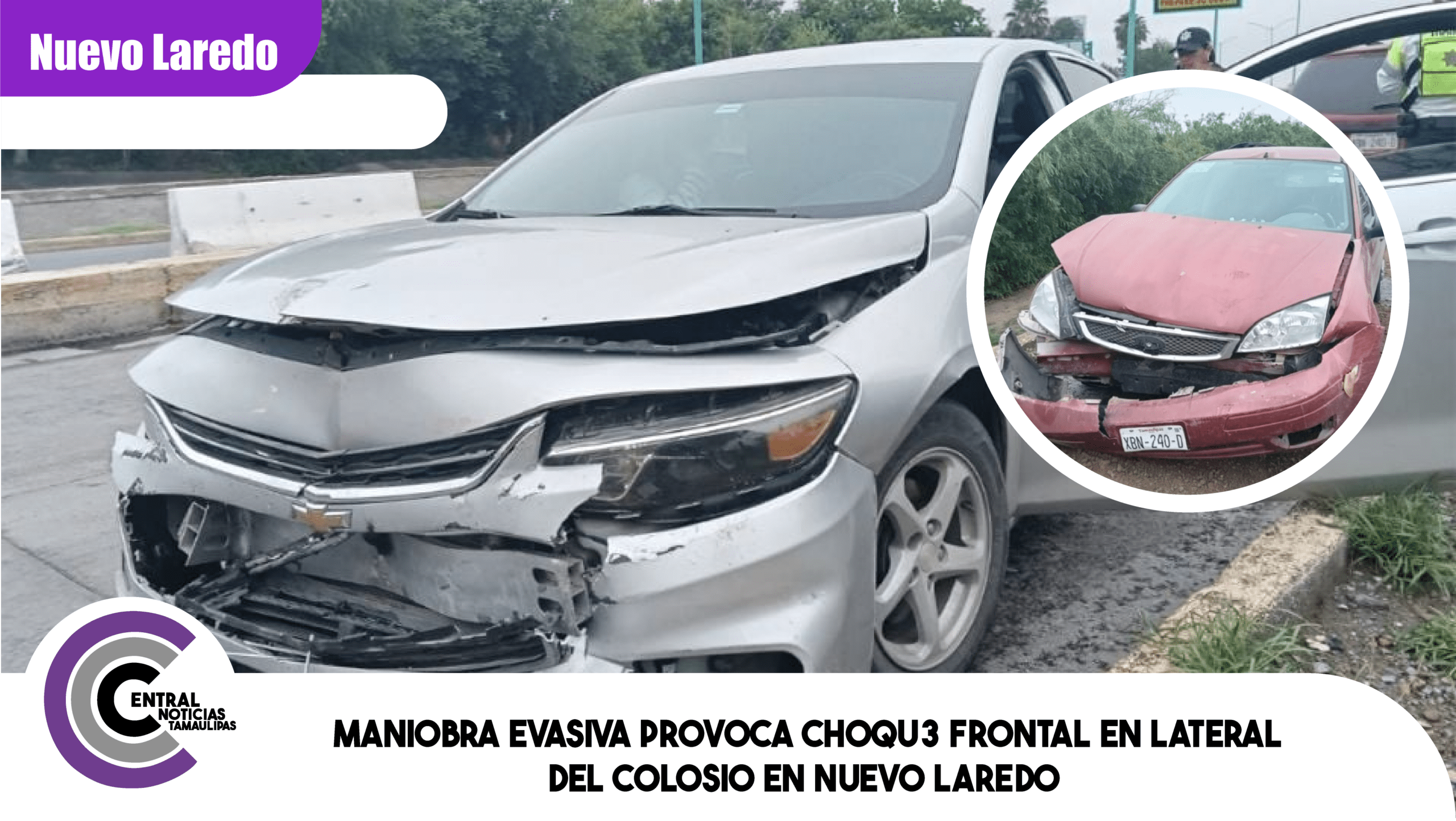Maniobra evasiva provoca choque frontal en lateral del Colosio en Nuevo Laredo