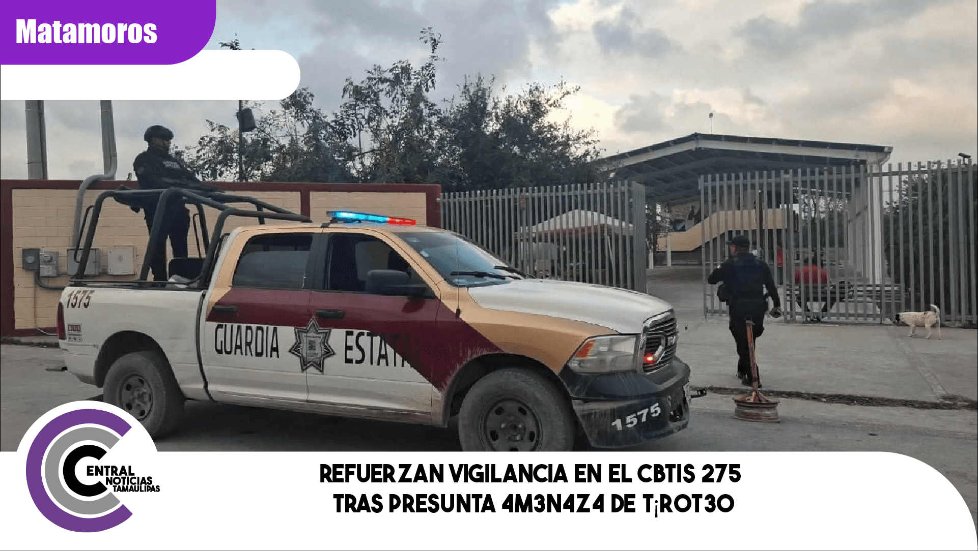 Matamoros, Tamaulipas.- Elementos de la Guardia Estatal implementaron un operativo de seguridad en el CBTIS 275 luego de que se reportara una presunta amenaza de t¡r0t30 en la institución.
