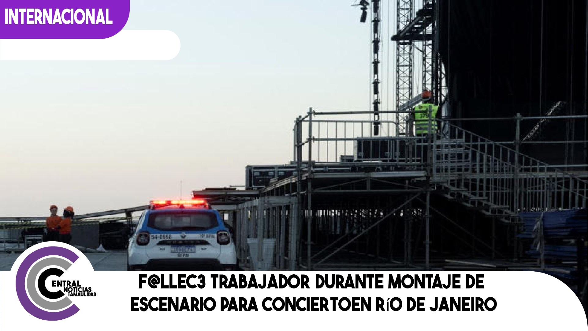 F@llec3 trabajador durante montaje de escenario para concierto en Río de Janeiro