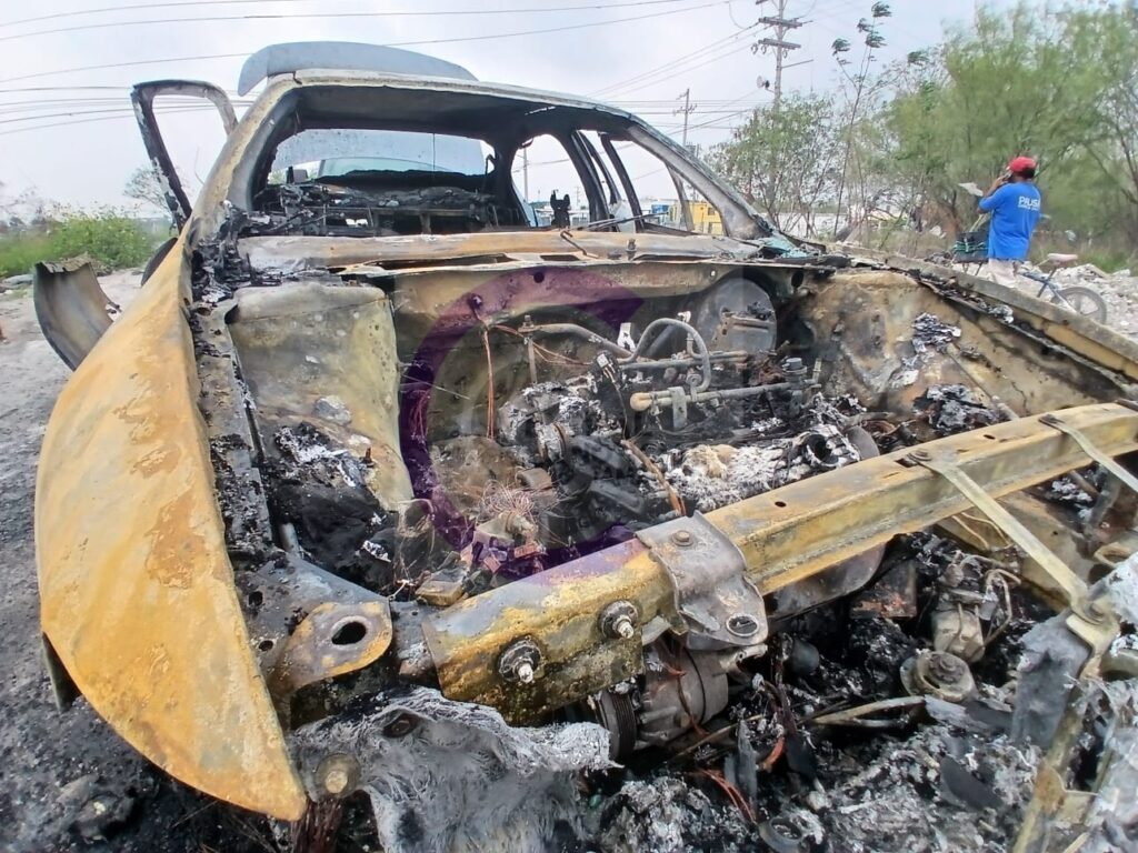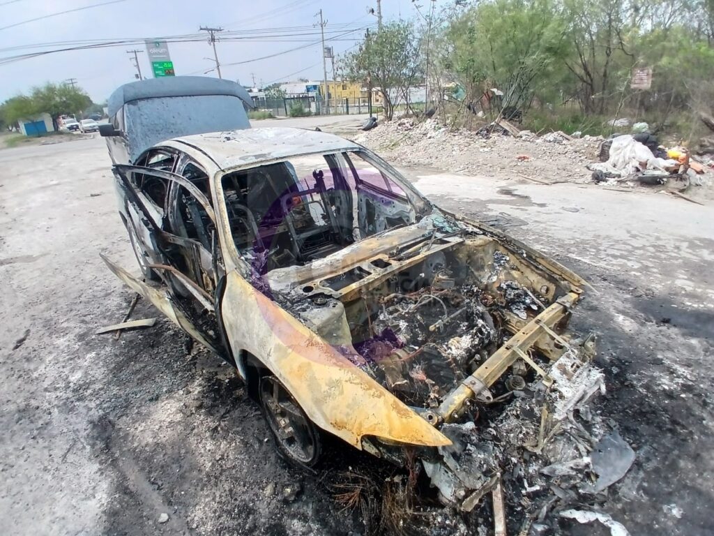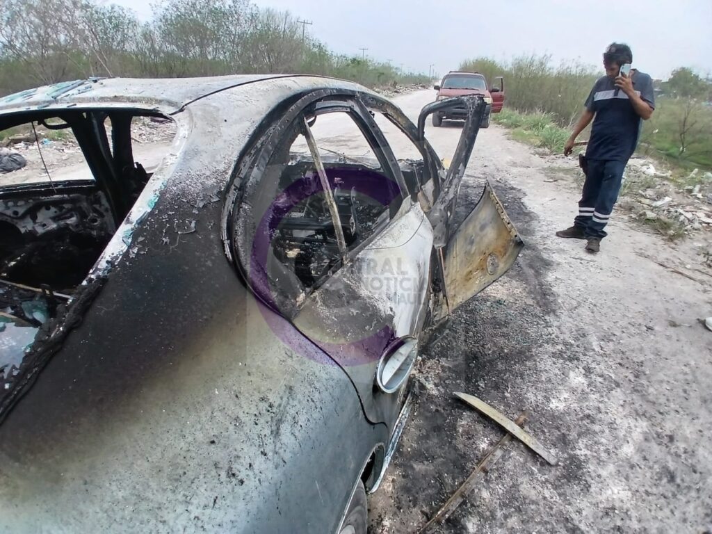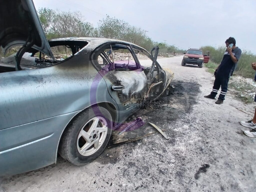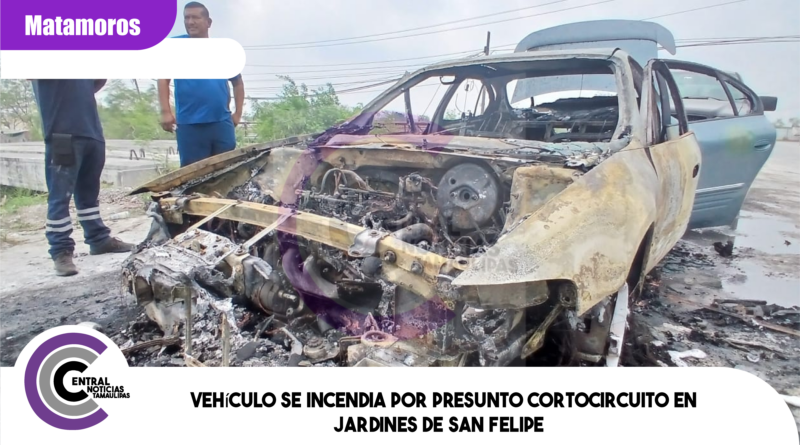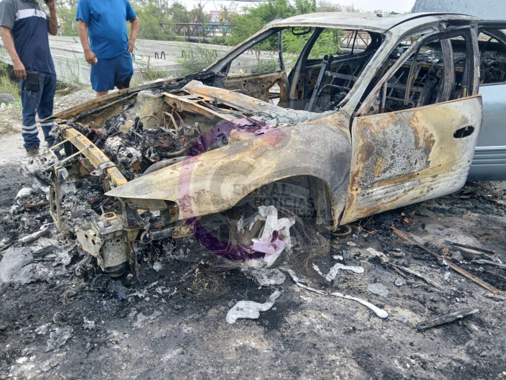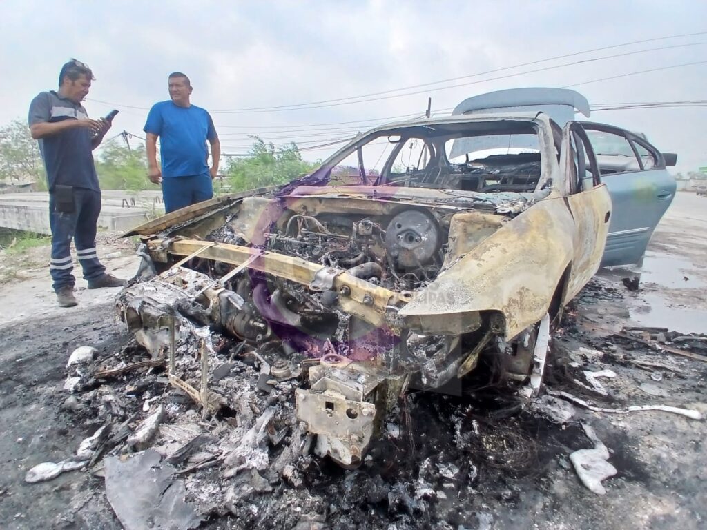 Matamoros, Tamaulipas.– Un automóvil fue consumido por el fuego la mañana de este lunes sobre la avenida Jardines de San Felipe, en el fraccionamiento que lleva el mismo nombre, a la altura de la brecha donde se ubica un puente.