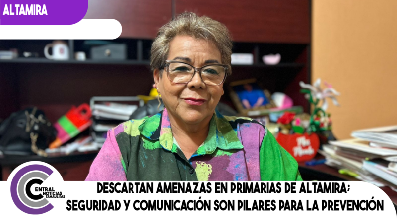 Altamira, Tamaulipas.– La directora de la escuela primaria Escuela Primaria Mártires de la Revolución, Micaela García Muñiz, informó que hasta el momento no se ha registrado ningún tipo de amenaza o situación de riesgo dentro del plantel ubicado en la zona centro de Altamira.