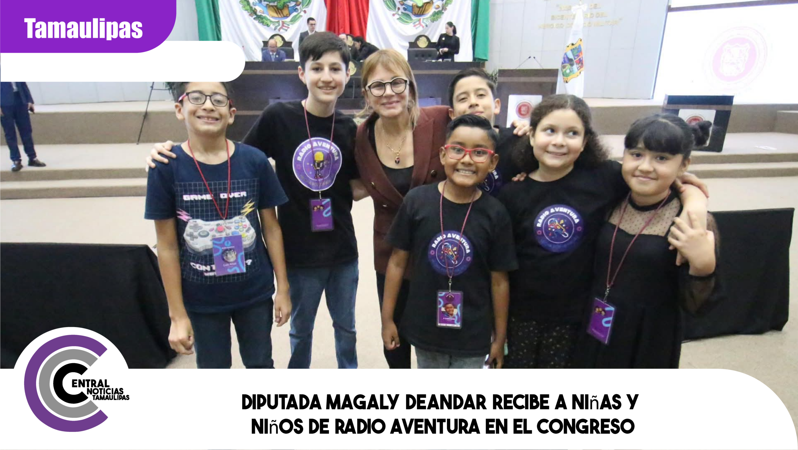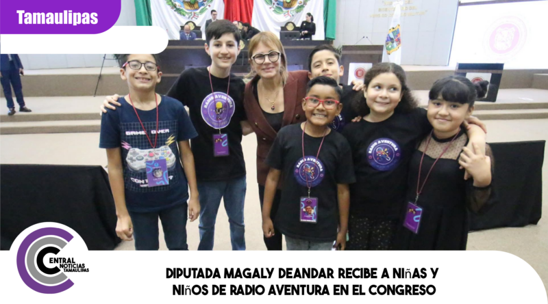 Reynosa, Tamaulipas.– La diputada local por Reynosa, Magaly Deandar, dio la bienvenida en el Congreso del Estado a niñas y niños integrantes del programa Radio Aventura Tamaulipas, un espacio protagonizado por infancias destacadas de la entidad.