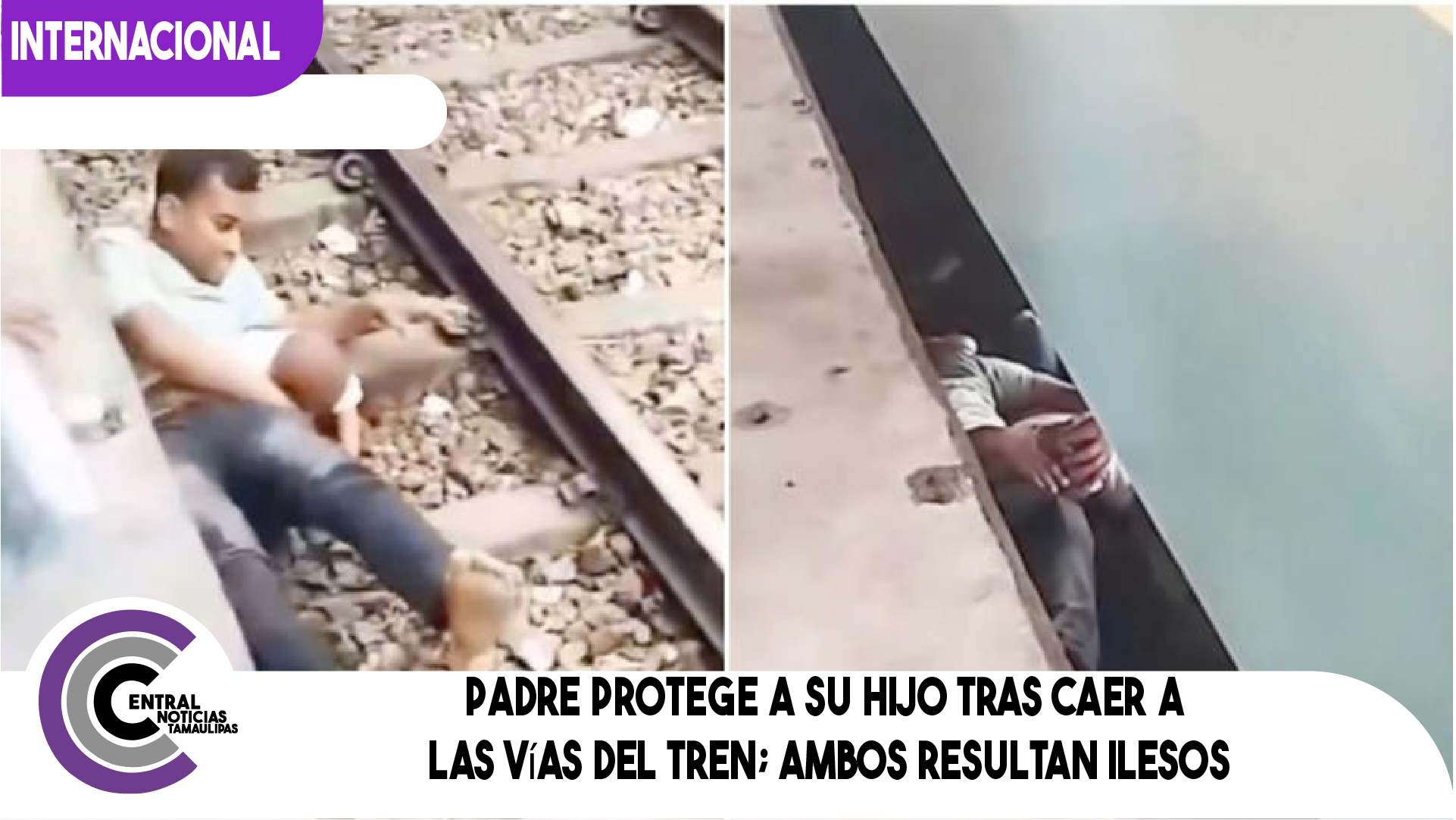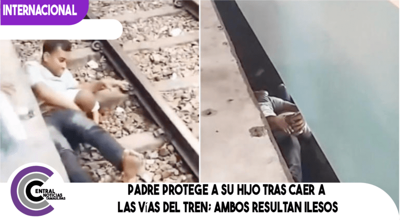 Padre protege a su hijo tras caer a las vías del tren; ambos resultan ilesos