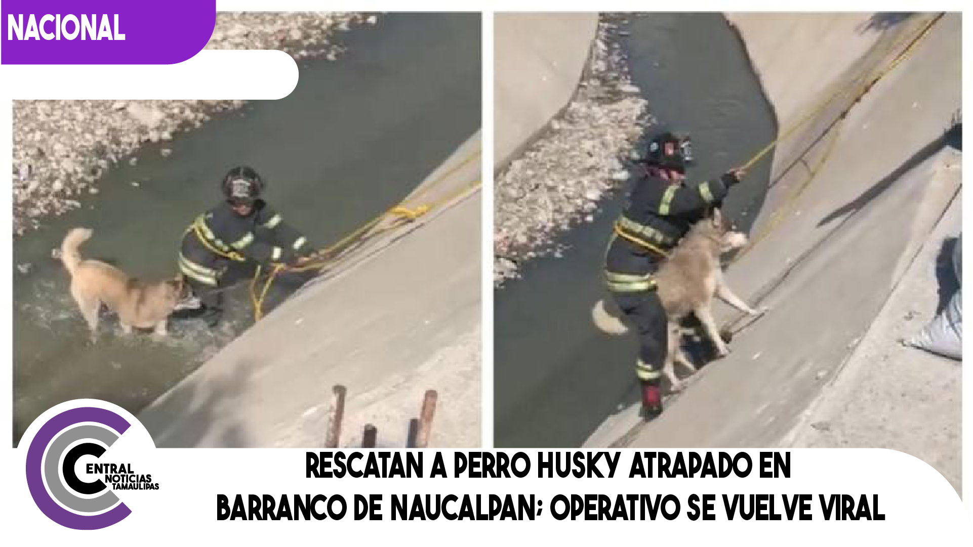 Rescatan a perro husky atrapado en barranco de Naucalpan; operativo se vuelve viral